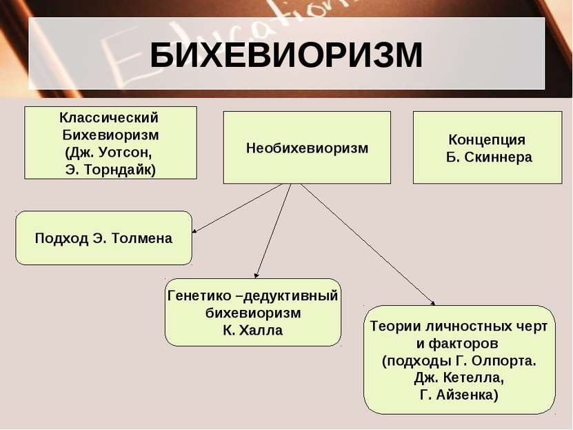 Біхевіоризм це науковий підхід до вивчення поведінки. Він акцентує на тому, що слід звертати увагу на видимі дії та реакції, а не на внутрішні психічні процеси, які важко виміряти або спостерігати. Цей підхід почав формуватися на початку 20-го століття з робіт таких науковців, як Джон Уотсон і Б.Ф. Скіннер.