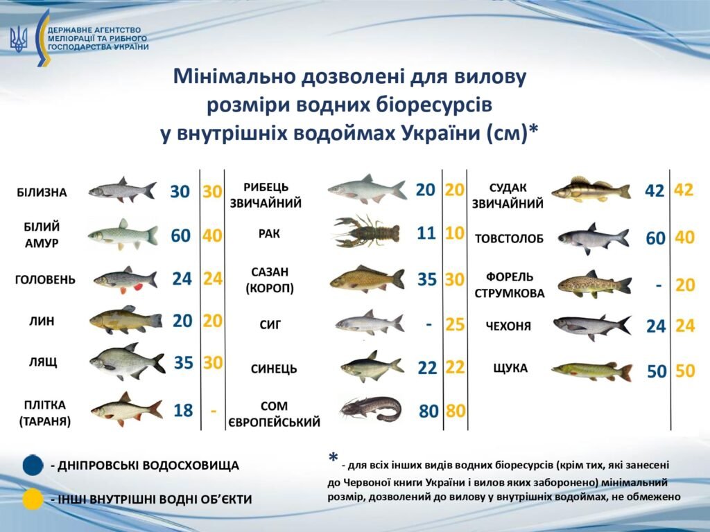 - Обмеження по ваговій категорії: Ліміт на особисте споживання — до 20 кг риби та морепродуктів.