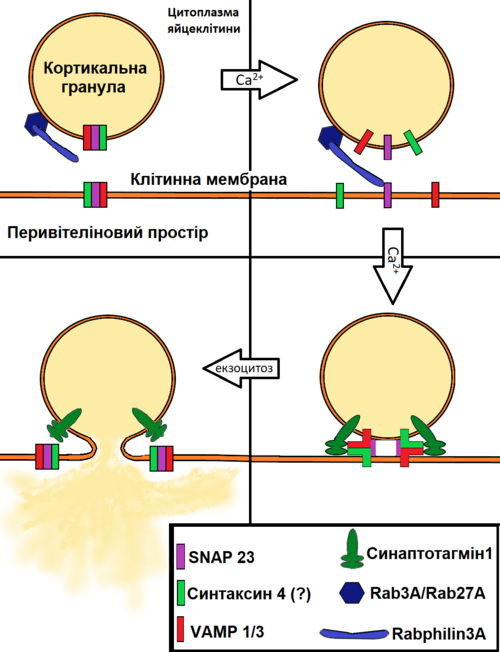 Цей дивовижний процес має свою сцену. Все починається з того, що сперматозоїд нарешті зливається з яйцеклітиною. Коли це стається, починається розгортатися кортикальна реакція. Спеціальні везикули, що зберігаються в яйцеклітині, розриваються, випускаючи ферменти, здатні блокує проникнення інших сперматозоїдів.