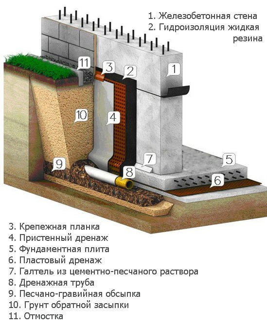 - Запобігання проникненню ґрунтової води у стіни підземної частини будівлі.