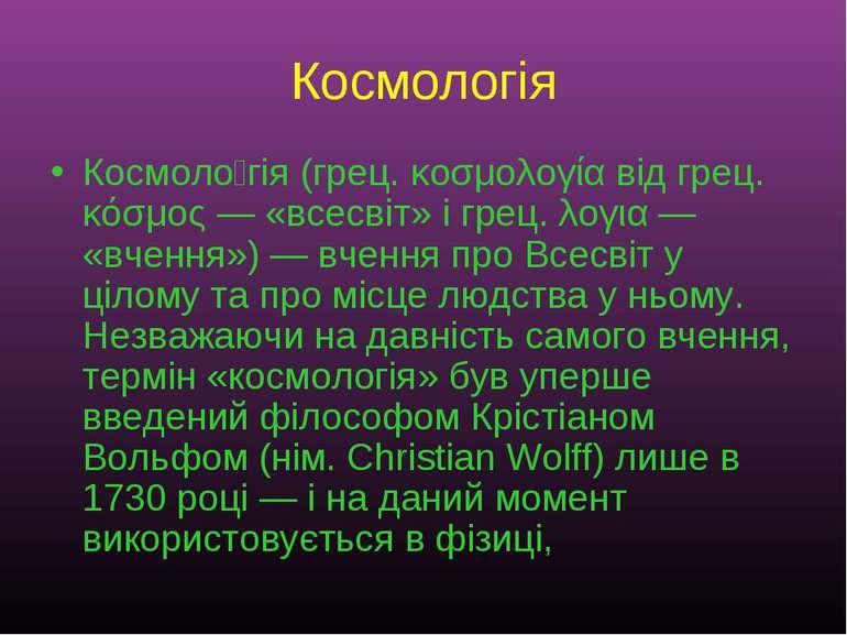 Походження космології