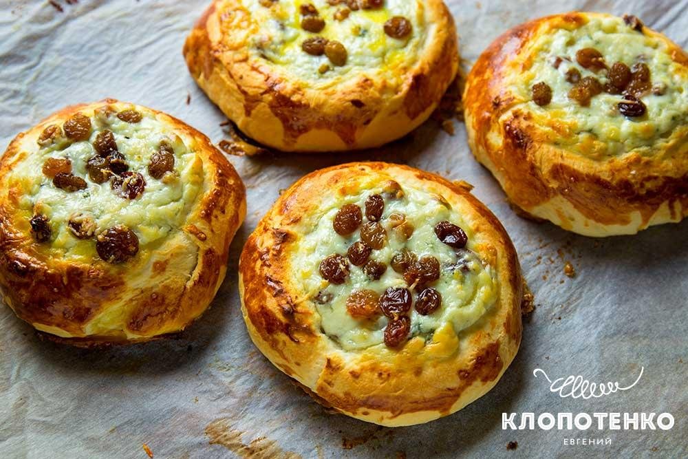 Ватрушки — це відкриті пиріжки з дріжджового тіста, в які додається начинка з творогу. Іноді творог поєднують з родзинками, ягодами або іншими фруктами для додаткового смаку. Це ідеальний варіант для сніданку або перекусу.