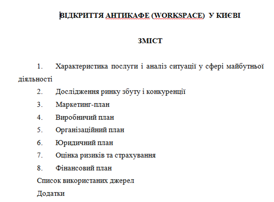 Розглянемо основні розділи, які варто включити до бізнес плану: