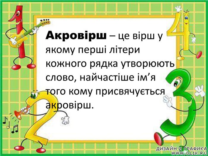 - Перевірте: переконайтесь, що ваш акровірш має сенс і зміст.