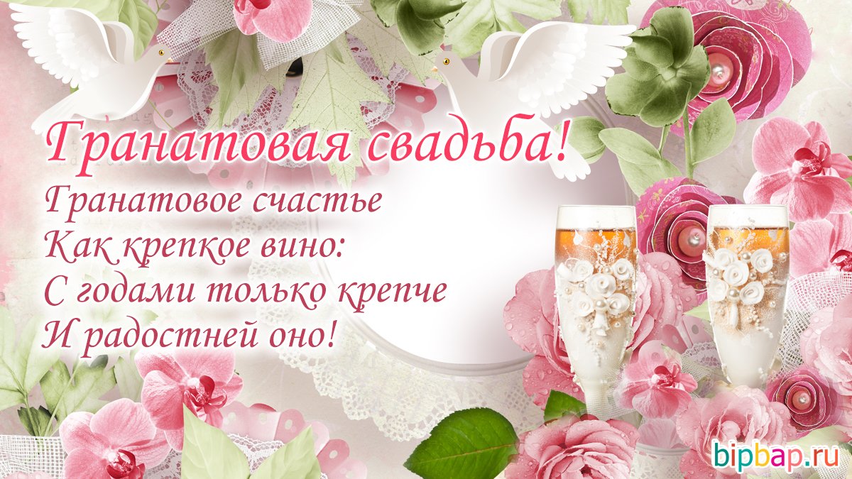 Солідна дата — 19 років сімейного життя. Я вас щиро вітаю з гранатовим весіллям. Побажати хочу домашнього тепла і затишку, мирного неба над головою і великої удачі, достатку і поваги в сім’ї, щирих почуттів і спільного прагнення до ще нездійснених мрій.