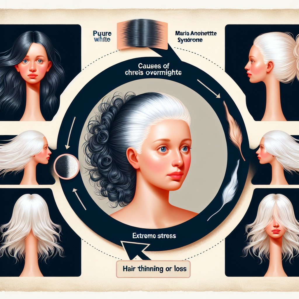 Ну, кажуть, що це така хвороба, яка перетворює волосся людини на сиве буквально за одну ніч від сильного стресу. Ідея така ж фантастична, як і страшна. Назва походить від французької королеви Марії Антуанетти, яка, нібито, посивіла під час полону перед стратою на гільйотині в 1793 році. Хоча про це та інші подібні історії не зібрано жодного документального свідчення, синдром продовжують обговорювати.