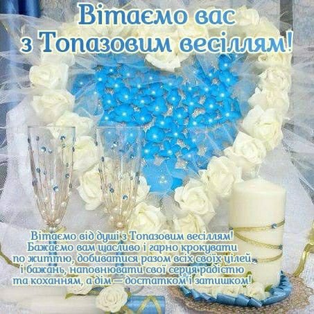 Вітаю вас з бірюзовим весіллям. В день повноліття вашої родини, коли за плечима 18 років чудовою подружнього життя, бажаю вам досконалого щастя і досконалої любові. Нехай ваша дорога далі в’ється бірюзовою стрічкою блага, нехай ваша сім’я не знає тривожних і непогожих днів.