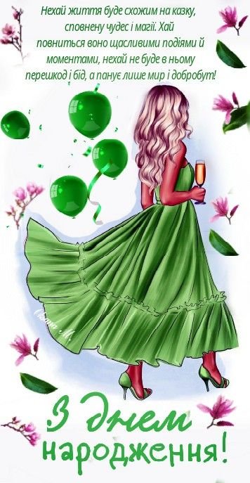 Вітаю з Днем народження! Нехай твоє життя буде яскравим, як веселка, сповненим радості, успіхів і чарівних моментів. Будь завжди щасливою!