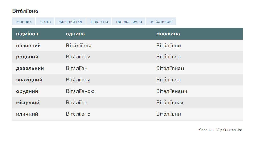 - Некоректне використання форми — використання «Віталієвич» або «Віталієвна» замість правильних «Віталійович/Віталіївна».
