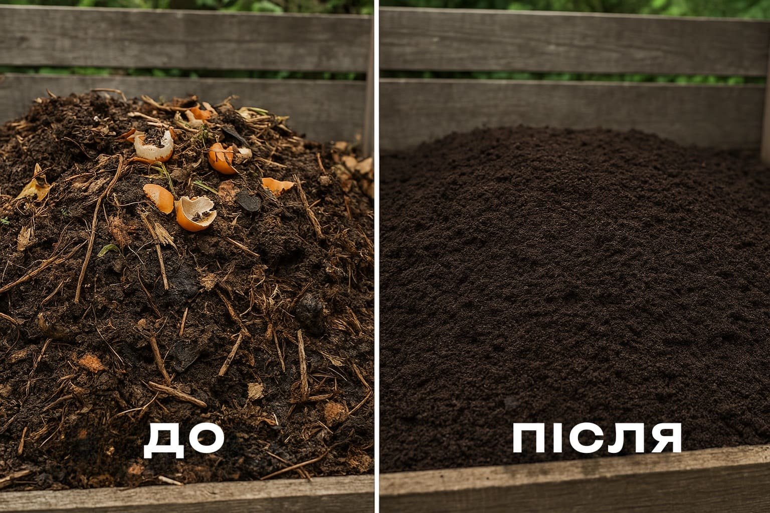 Готовий компост має однорідну масу, темний колір і приємний землистий запах.