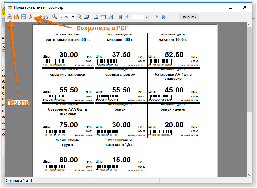 - Роздрукуйте цінники на принтері.
