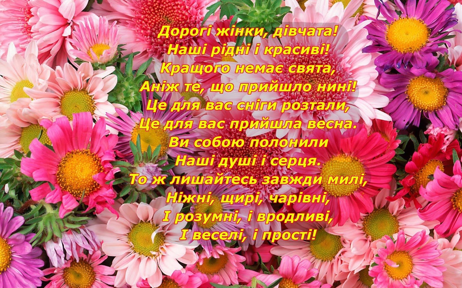 Головна » З 8 Березня! Нехай компліменти ллютьсяЗ 8 Березня! Нехай компліменти ллються Привітання для дорогих та близьких Автор Fedorenko Serhii На читання 1 хв Опубліковано 6 Квітня, 2026З 8 Березня! Нехай компліменти ллються безкрайнім морем, а радість наповнює кожен день!Читати Ти з нами три десятка років як це чудово!